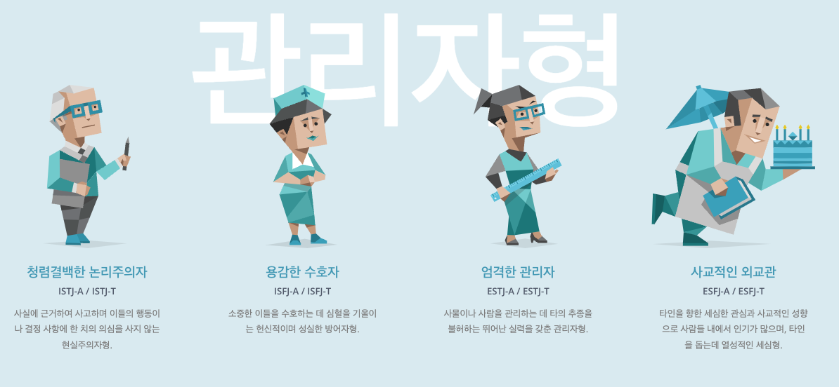 심리테스트라기 보다는 성격유형, 성향에 관한 특성을 16가지로 나누어 분류하는 검사이니 참고하는 용도이죠.