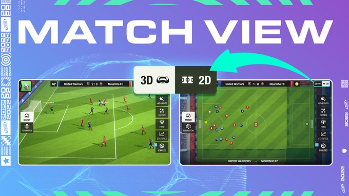 Top Eleven 2022에서는 3D 라이브 매치를 통해 한 번의 클릭으로 3D와 2D 매치 보기를 전환하는 옵션을 도입할 예정입니다.