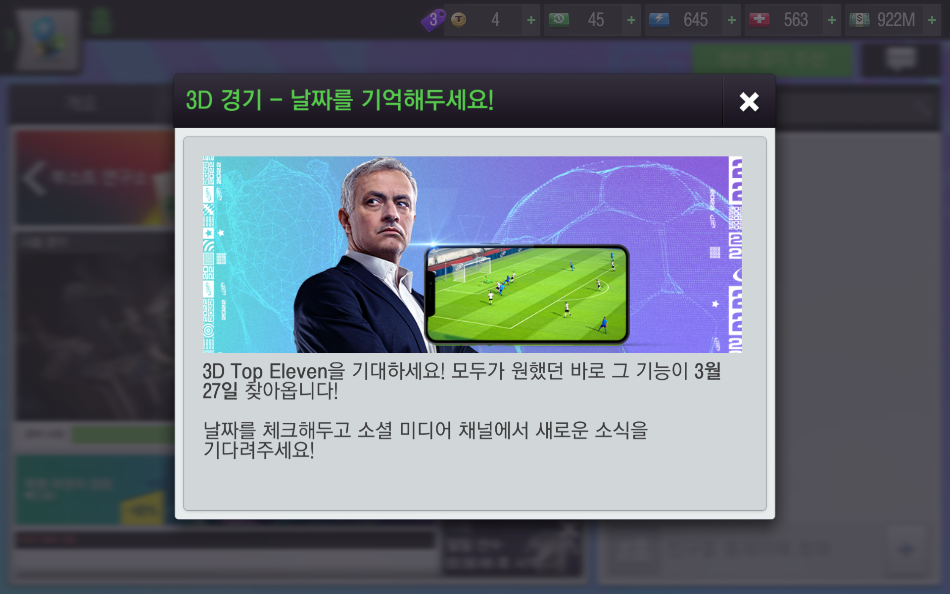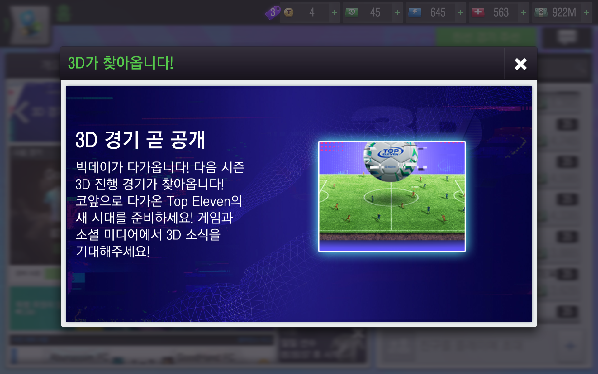 Top Eleven 2022는 3월 27일부터 3D 매치 뷰를 지원하다고 밝혔습니다.