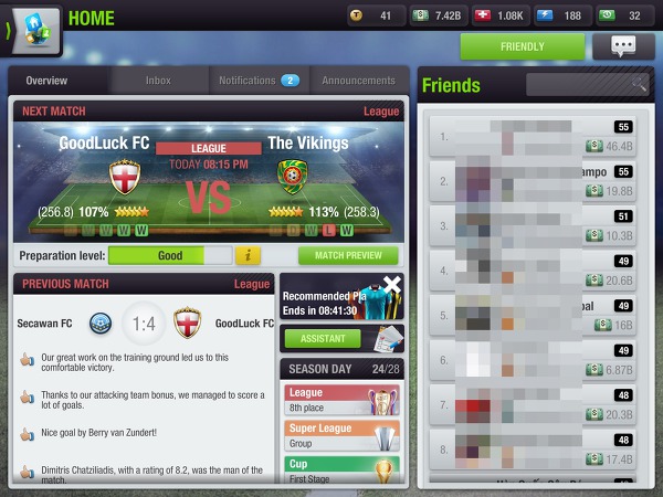 매일 약간의 시간만 투자하면 내가 운영하는 축구팀의 성적과 방향성을 볼 수 있다.