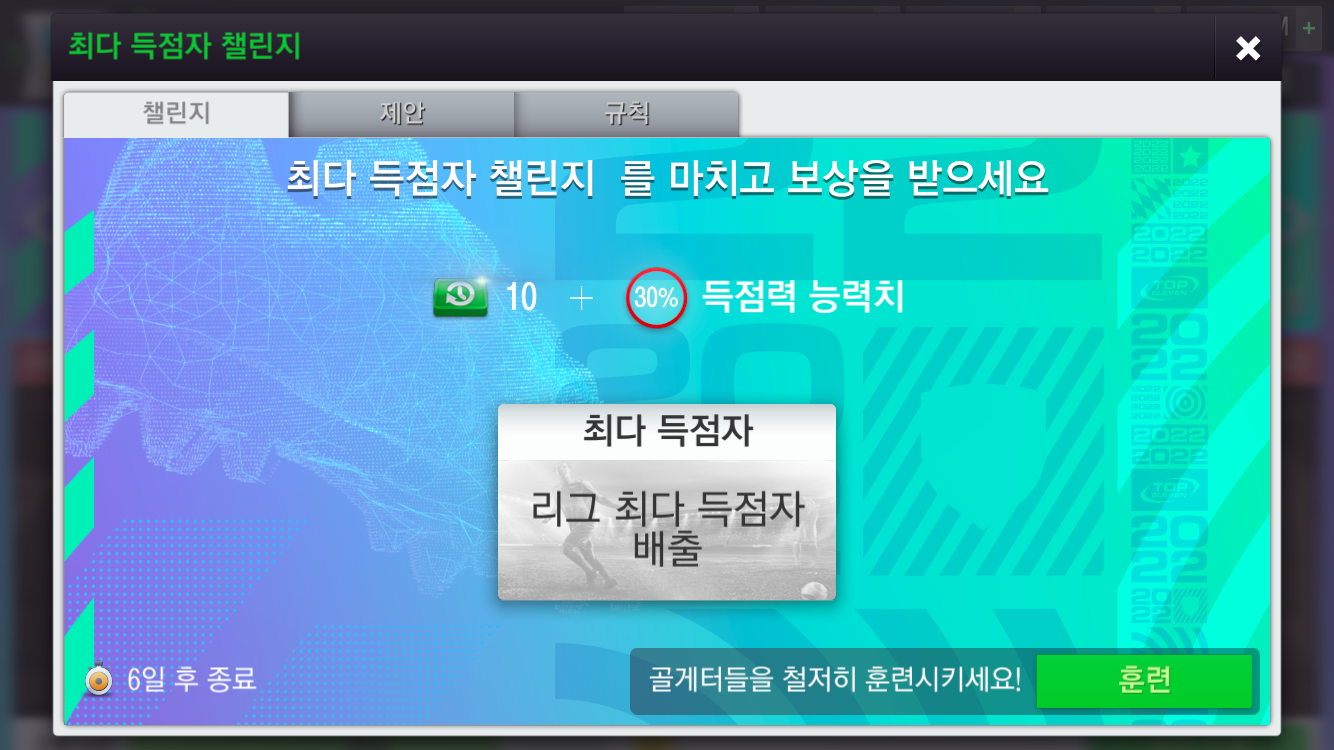 보상 : 스킬부스터x10 + 득점력 x 30%.