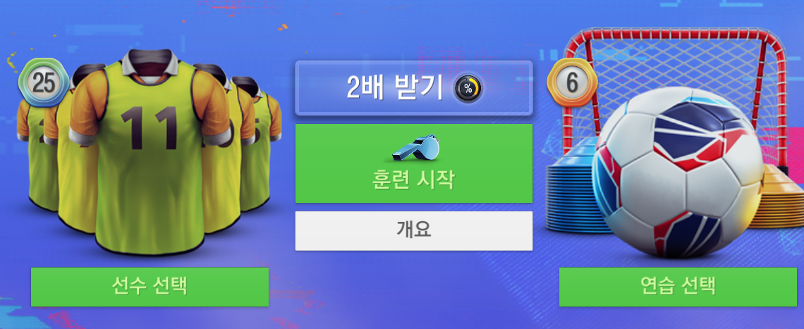 현질하기 전에 광고보기를 통하여 "무료로받기" (부상, 사기, 컨디션, 달러)와 '2배받기" (훈련x2)를 이용하여