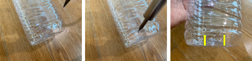 생수병의 아랫쪽에 인두기로 구멍을 냅니다. 인두기를 준비해두었네요. ^^