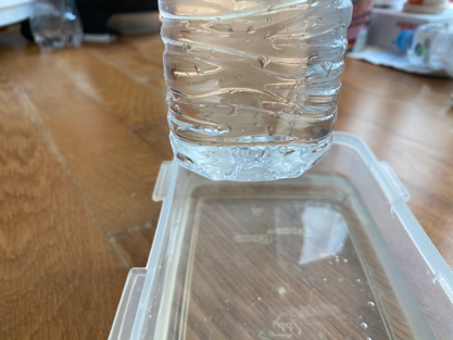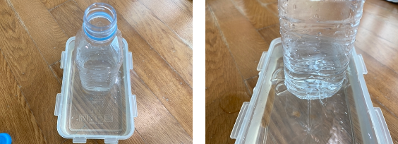 생수병과 물그릇에는 물을 미리 채워도 됩니다. 물그릇은 임시로 사용할 것이기 때문에 밀폐용기를 사용했습니다.