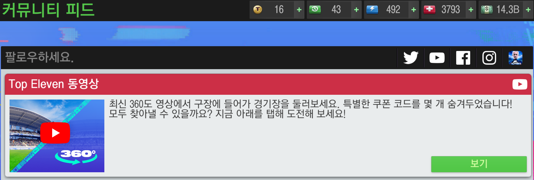이벤트 : 탑일레븐 360˚ 비디오, 보상코드 찾기