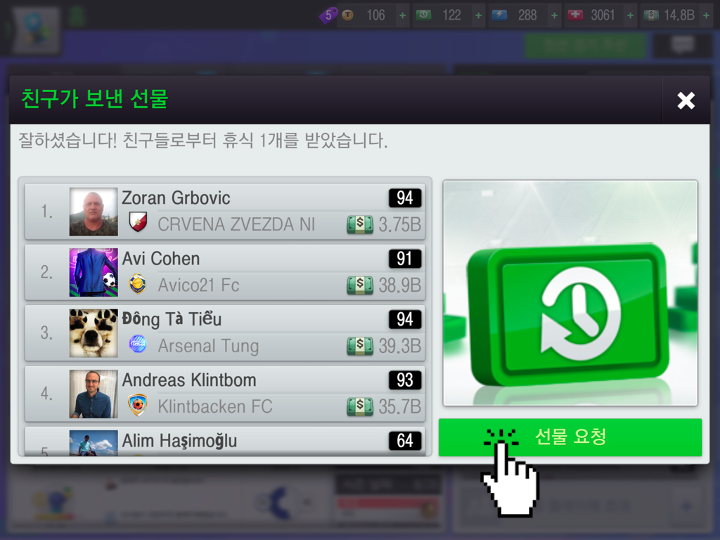 탑일레븐 매니징에서 매일 확인해서 무료로 얻어야 하는 루틴이 있습니다.