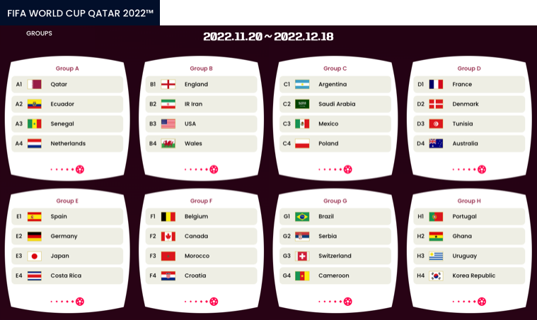 일정 : 2022년 11월 20일(일) ~ 12월 18일(일) (현지시간)