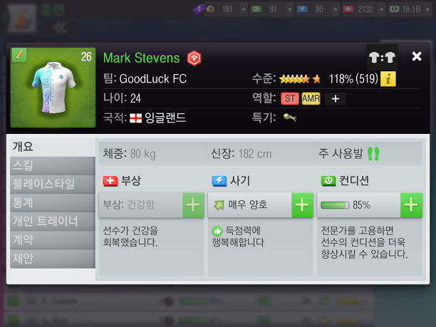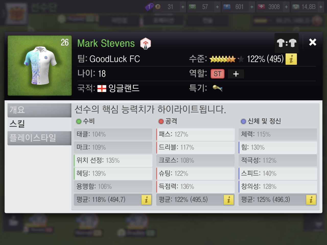 다른 선수들은 영입당시 속성 캡쳐해둔 자료가 없어서 자료 첨부는 하지 못하였습니다.