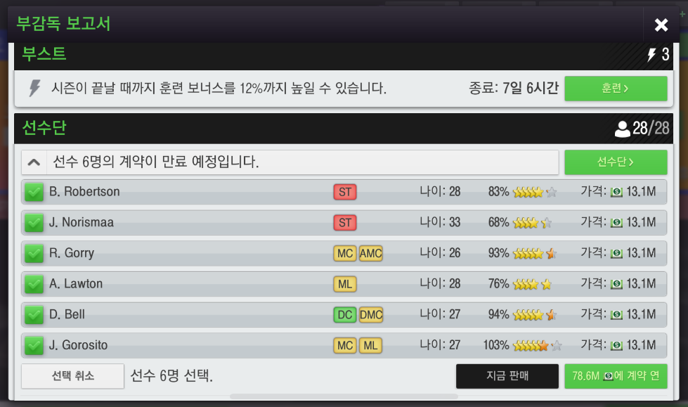 그러면 계약 대기중인 선수들과 연장계약 또는 신규 계약을 하시면 계약 관련 작업이 완료됩니다.