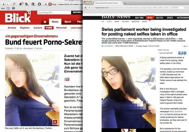 두 기사의 사진에서는 한 쪽은 여성의 얼굴을 가리고 있고 다른 한 쪽은 여성의 가슴을 가리고 있습니다.
