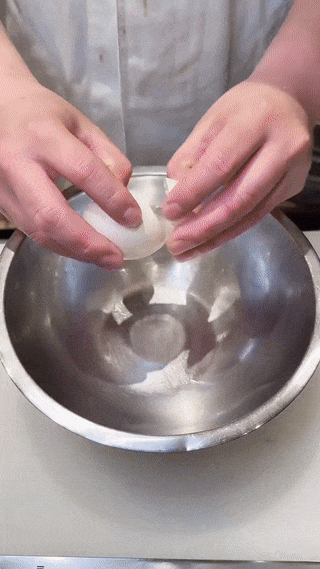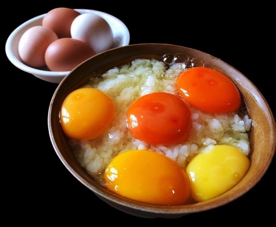 일반적인 계란 노른자는 옥수수 등 착색 성분이 포함된 사료로 인해 노란색을 띠지만, Kometsuya 계란은 닭이 쌀을 주식으로 하여 노른자가 희게 변하는 것이 특징입니다.