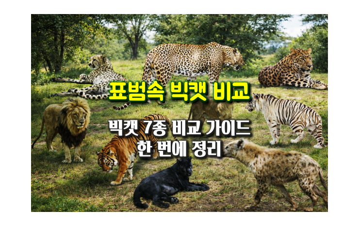 이번 글은 사자·호랑이·재규어·표범·치타·퓨마·설표범 7종을 한 번에 정리해, 외형만 보고도 빠르게 구분할 수 있도록 구성했습니다.